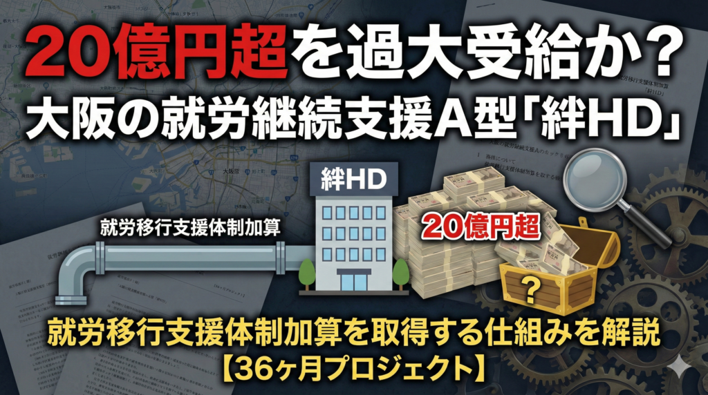20億円超を過大受給か?大阪の就労継続支援A型「絆HD」の就労移行支援体制加算を取得する仕組みを解説【36ヶ月プロジェクト】
