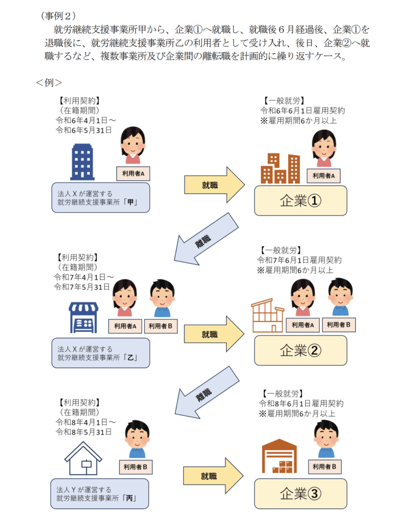 就労移行支援体制加算の制度の趣旨は「一般就労へのステップアップと定着」を評価する加算ですが、実態としては「グループ内での形式的な雇用」と「短期間での退職と就職の繰り返し」だったとすれば、本来想定された「本人の希望や適性に沿ったキャリアの実現」とはほど遠い運用といえます。