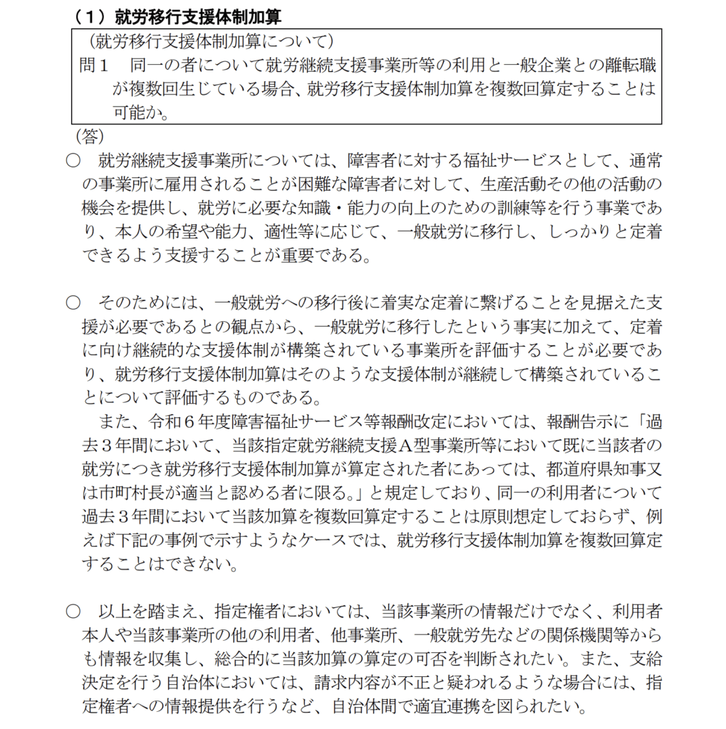 同じ人で「就労移行支援体制加算」を何度も取って良いのか?