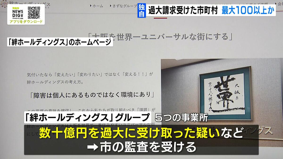 大阪市の福祉関連会社「絆ホールディングス(HD)」が2024年度以降、傘下の事業所で障害のある人の就労支援にかかる給付金(報酬)を数十億円規模で過大に受給していた疑いがある