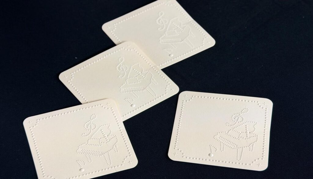 私たちは「オトグラフ」というブランドを立ち上げて、点字の教科書を素材に、ポチ袋や封筒などを作って販売しています。